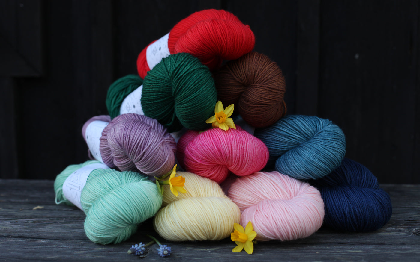 käsinvärjättyä villavaa paksumpaa sukkalankaa.