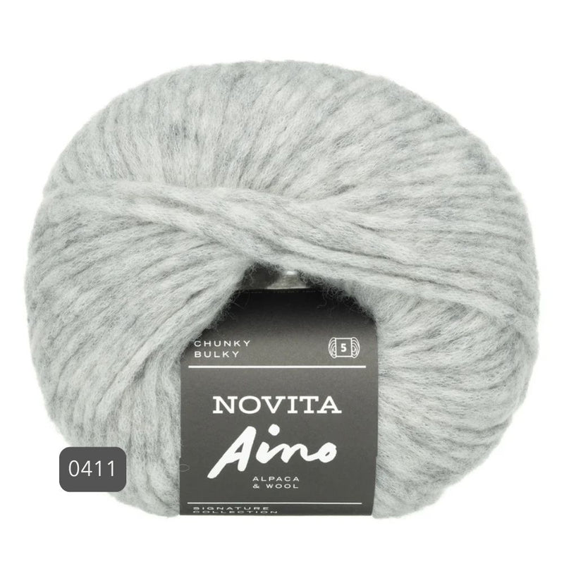 Charming Novita Aino is a perfect choice for you who desire practical but beautiful knitwear. Aino is manufactured with Blow wool-technique, which gives for a bulky weight yarn still a light and airy feel. Aino lends itself to stunning cable and lace knits as well as smooth stockinette finishes.