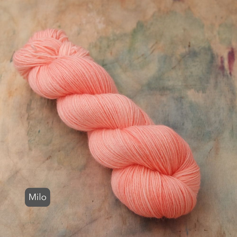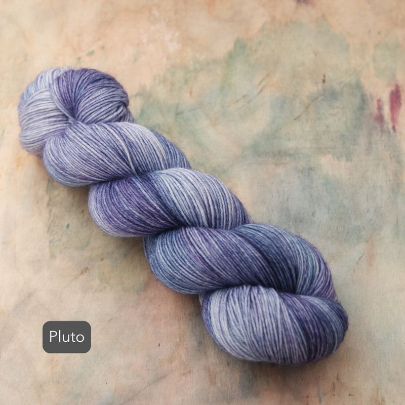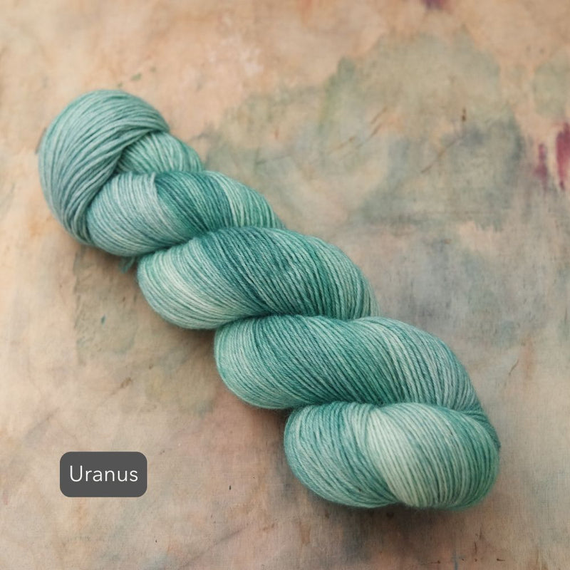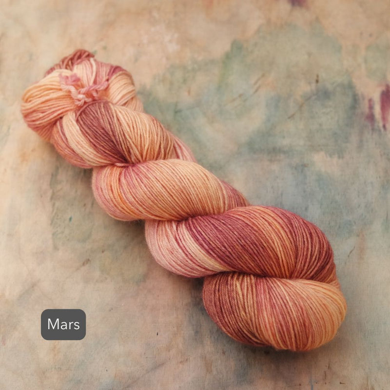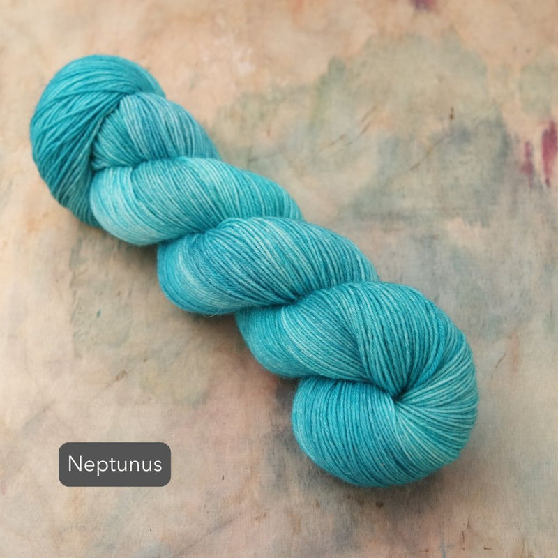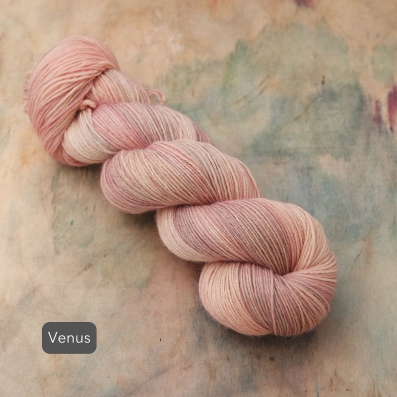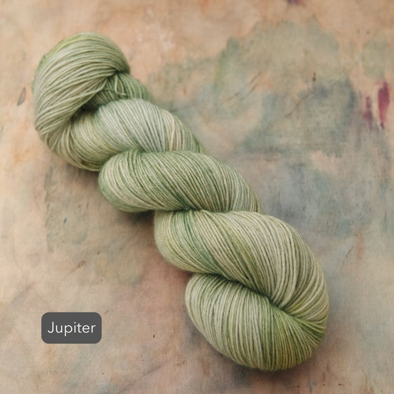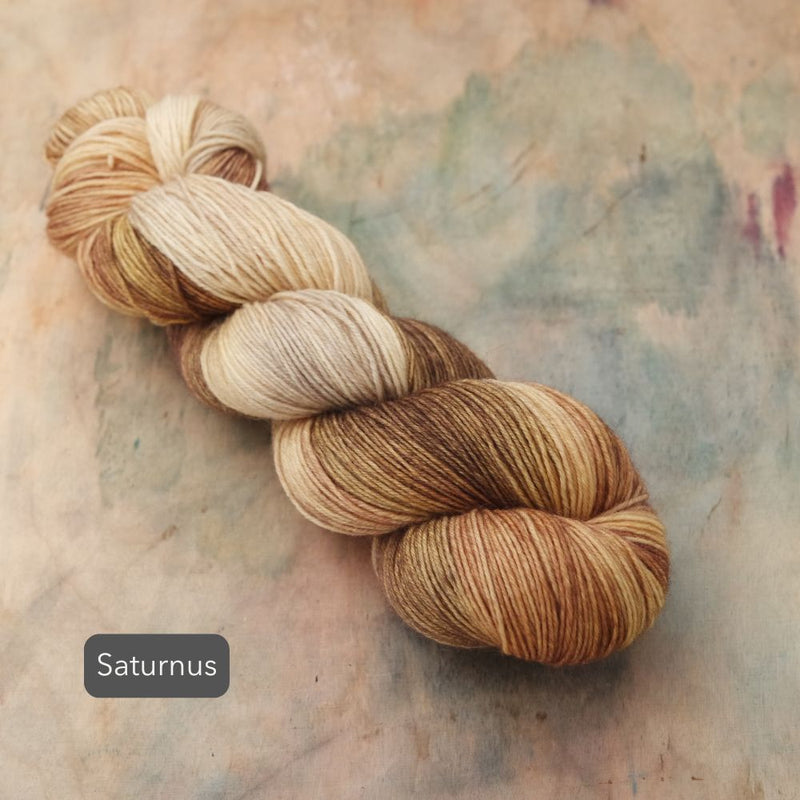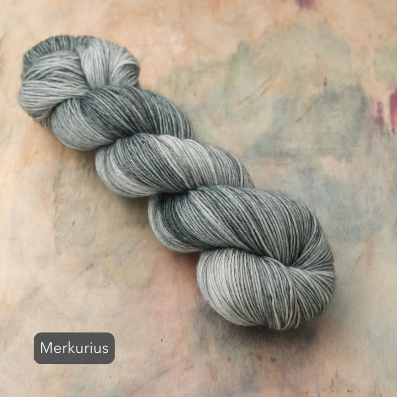 As each skein is a piece of hand-painted art, there are no identical skeins. It is recommended that for larger projects in the same colour, you should knit in stripes, alternating skeins every 2 rows.